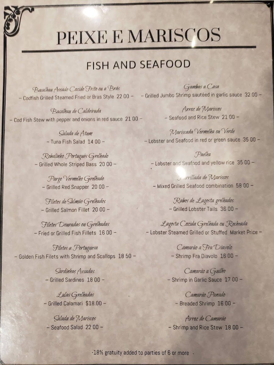 As you step inside, you're greeted by a warm atmosphere that reflects the rich cultural heritage of Portugal. The menu is a treasure trove of culinary delights, showcasing a wonderful array of dishes that highlight the country’s seafood tradition and bold flavors. Begin your journey with tantalizing appetizers such as the Grilled Portuguese Sausage (Chourica Assada) or the comforting Stuffed Mushrooms (Cogomelos Recheados). For seafood enthusiasts, the Seafood and Rice Stew (Arroz de Mariscos) is a must-try, bursting with fresh ingredients and incredible depth of flavor.